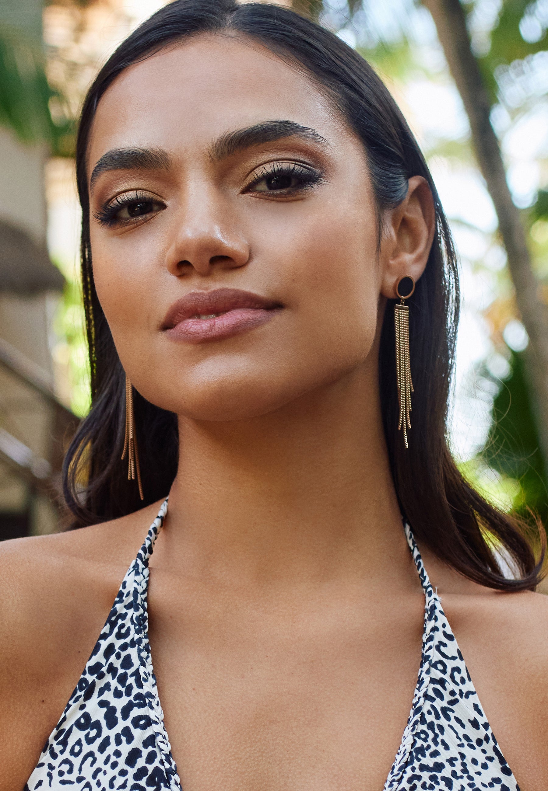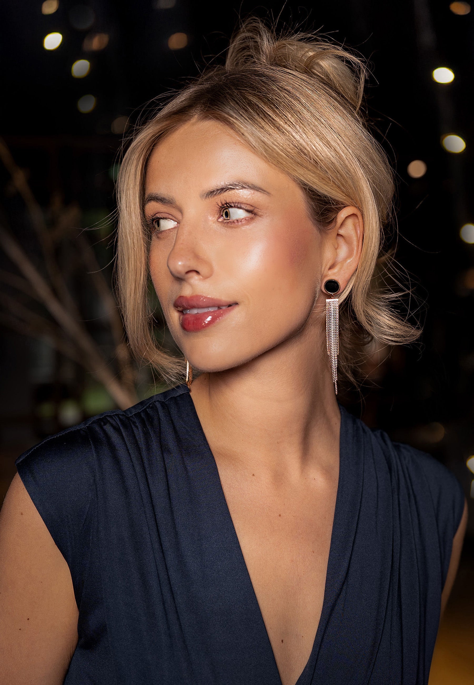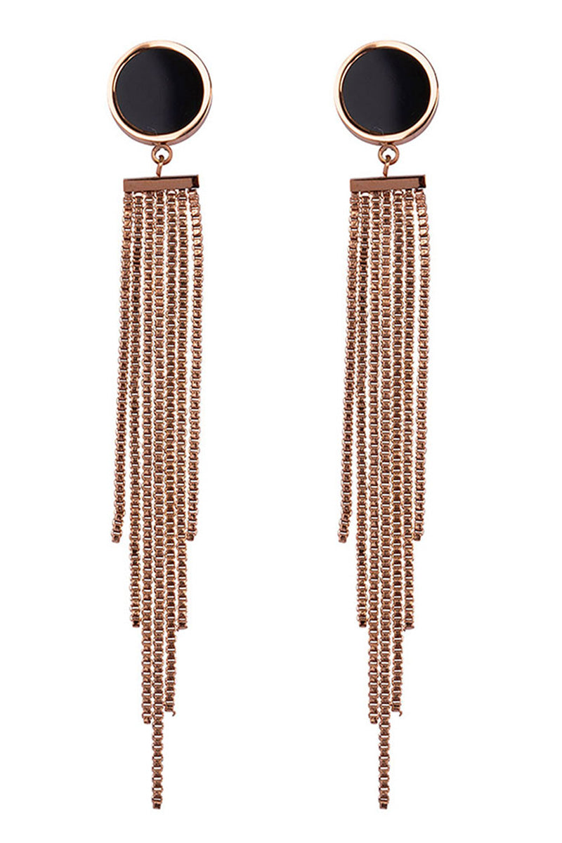 Earrings Elegant Round Stainless Steel - Rose Gold Black