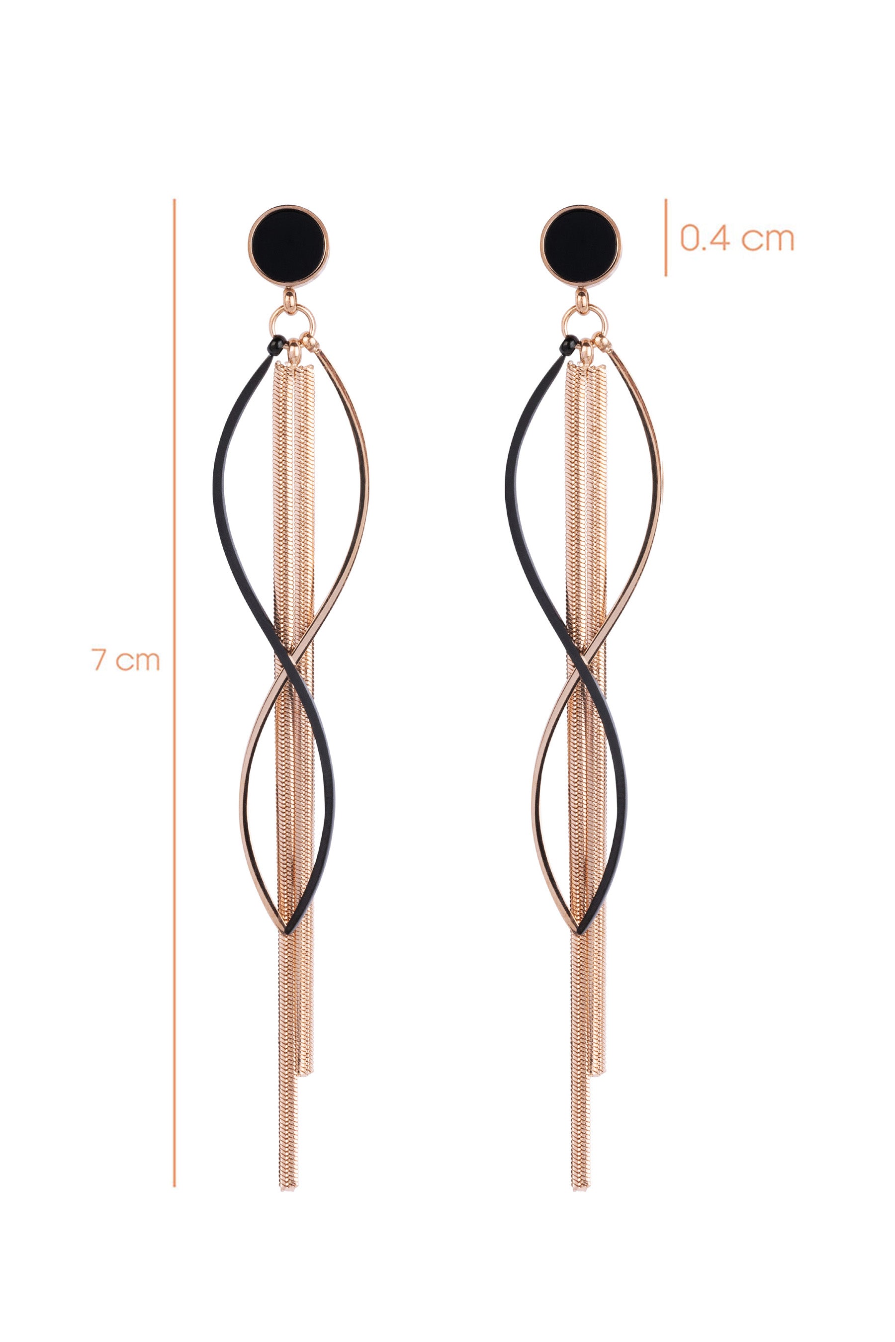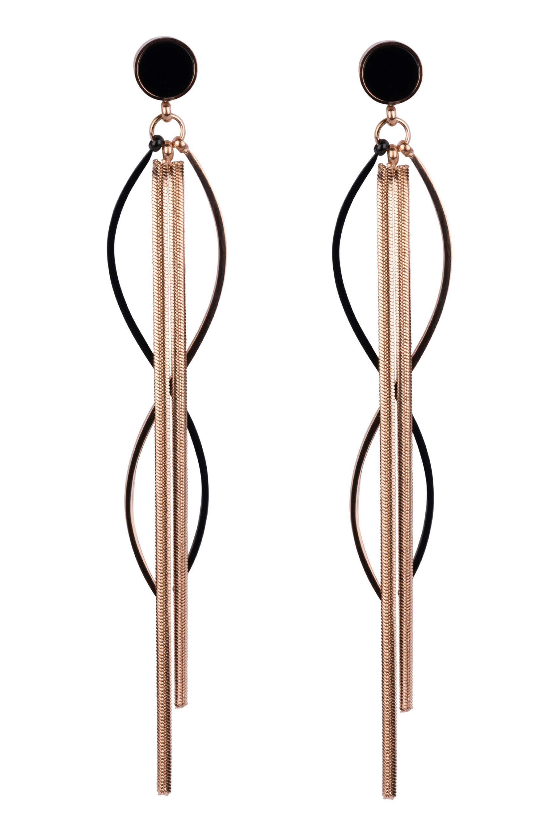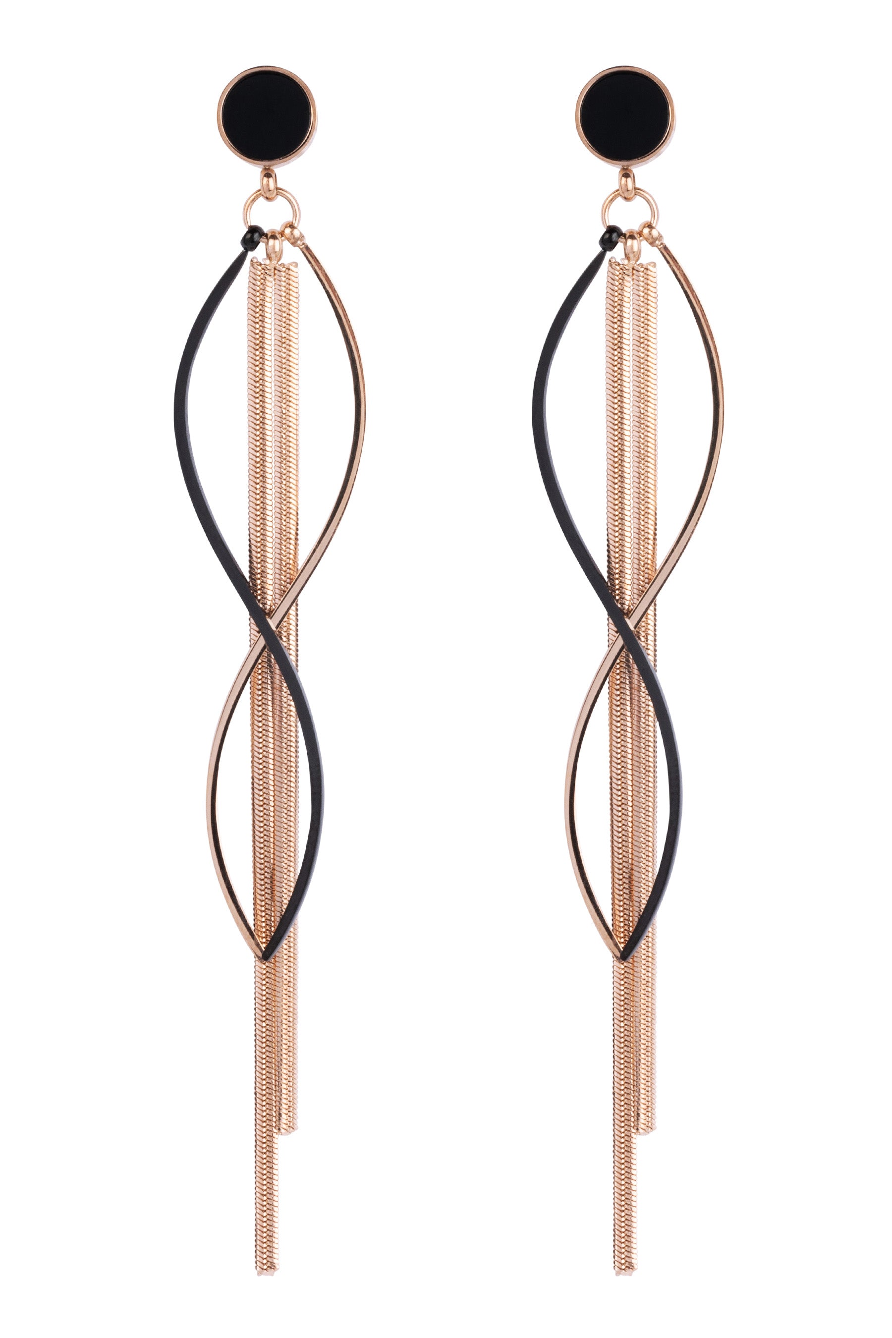 Oorbellen Elegant Gekruld RVS - Rose Goud Zwart