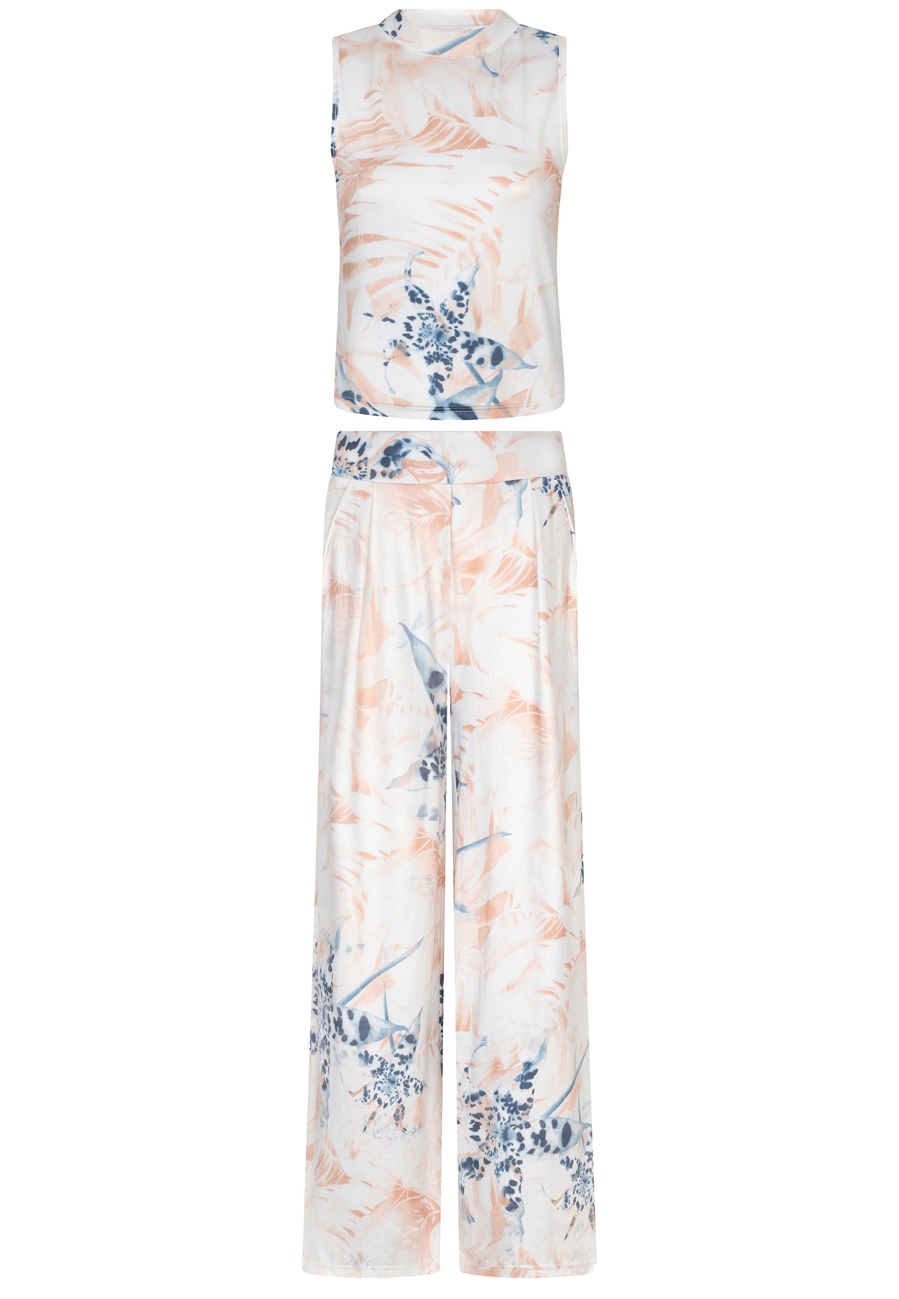 De set bestaat uit een soepelvallende palazzo pants met wijde pijpen en een elegante halter crop top die mooi aansluit op het lichaam. Samen vormen ze een lichte, stijlvolle outfit die je moeiteloos draagt van een lunch in de zon tot een diner, feest of bruiloft.