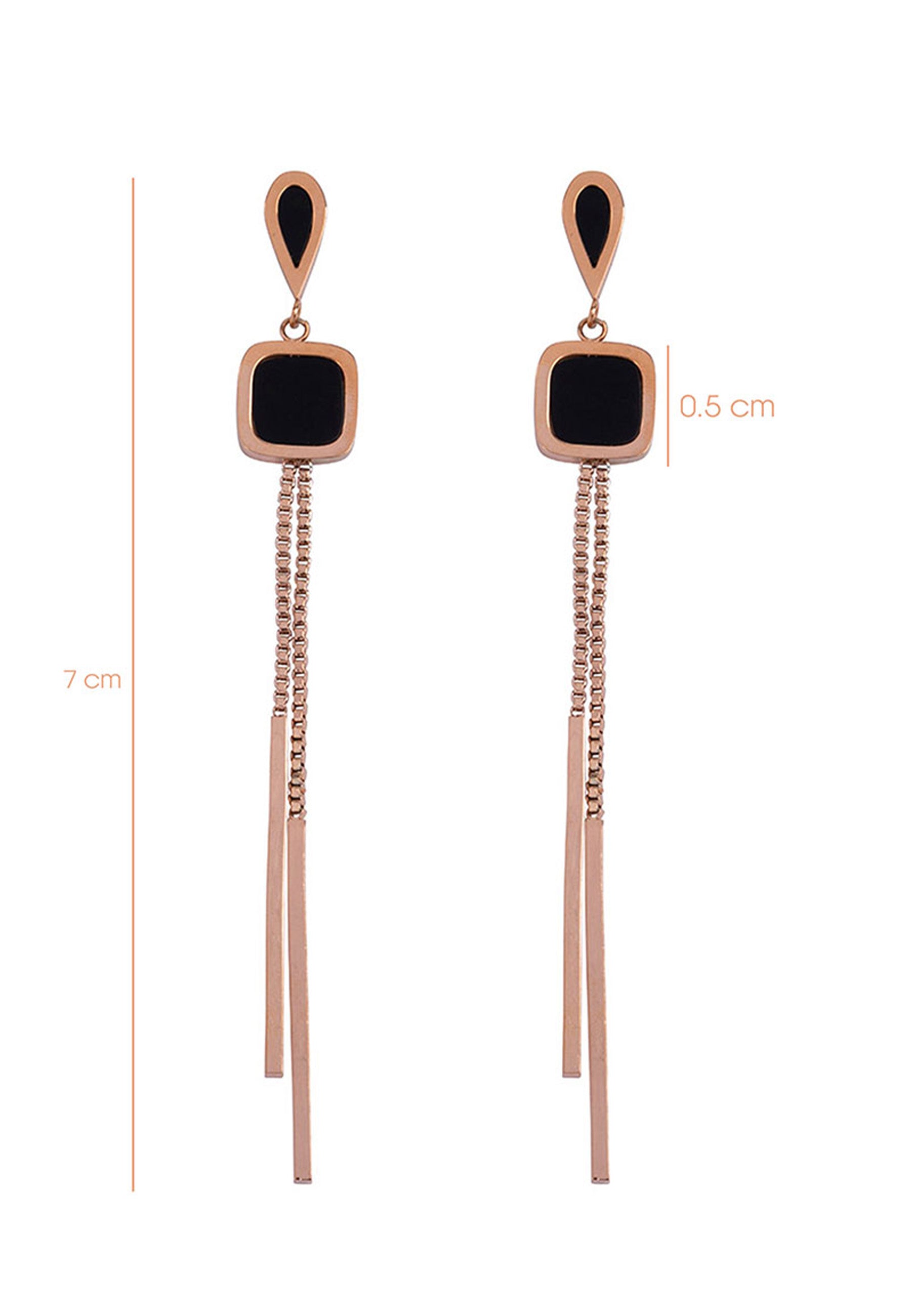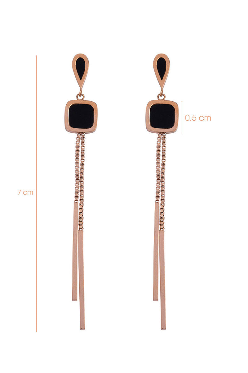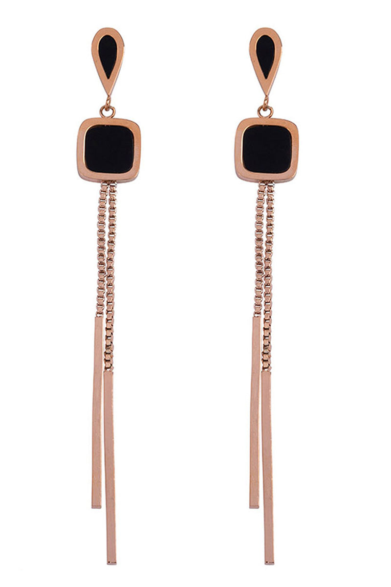 Oorbellen Elegant Druppel Vierkant RVS - Rose Goud Zwart